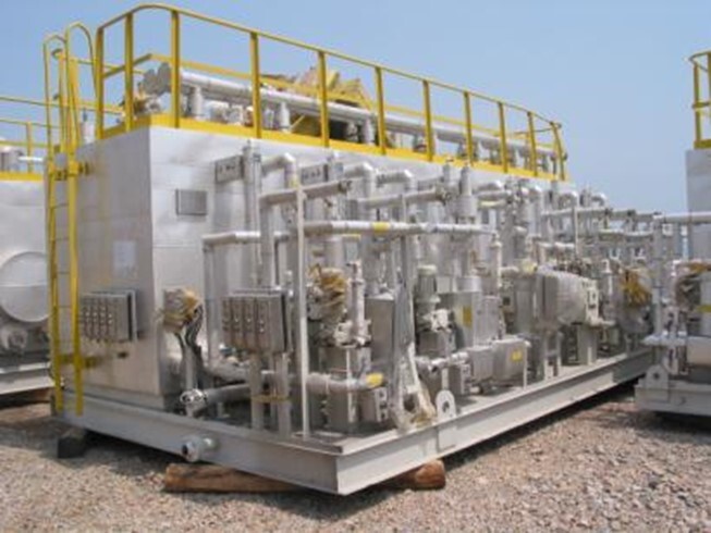 该系统主要是注入化学药剂,目的是稳定原油和天然气处理、生产工况、防止设备和管线腐蚀,提高原油脱水、脱气的效率,保证油气处理合格达标。该装置将不锈钢方罐中的化学药剂通过比例分别添加至流程中涉及到的各个化学药剂注入点。主要使用材料为:不钢、双相钢及ASME标准材料